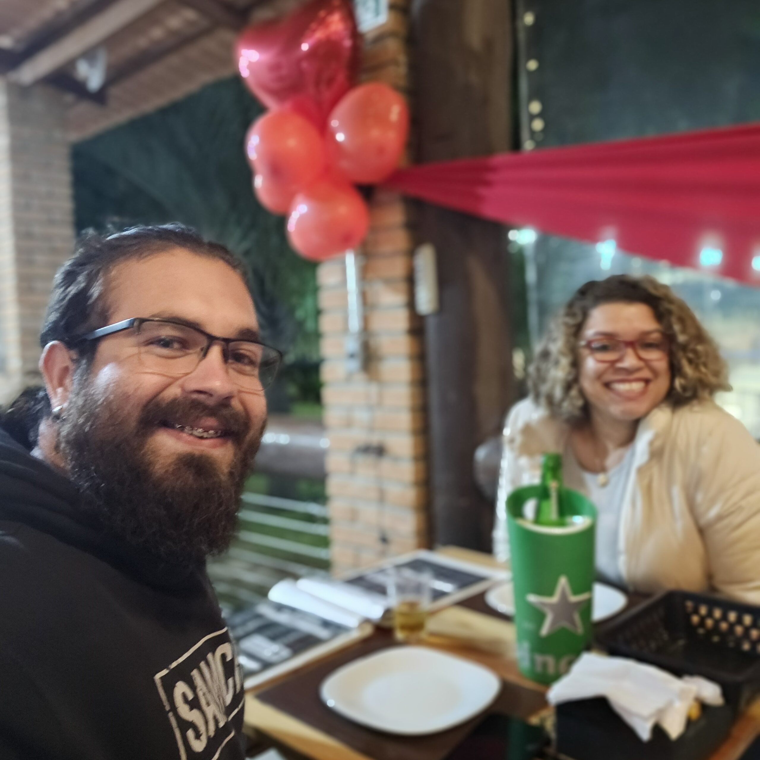 Eu insisti rindo, entre aulas e churrascos, até ganhar seu sim. Fiquei, virei lar e sonho. Ela me incentiva sempre; juntos vamos mais longe, hoje e amanhã. Com amor crescemos, rimos e construímos um futuro sólido. Ela é meu lar definitivo para sempre!
